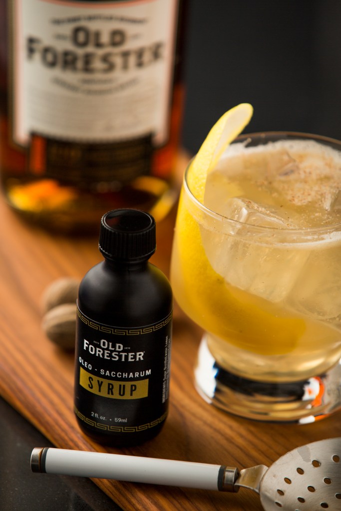 - Ingredients: 1.5 oz Old Forester 100 Proof, 1 oz Oleo Saccharum Syrup, 2 oz Water, 0.5 oz Lemon Juice