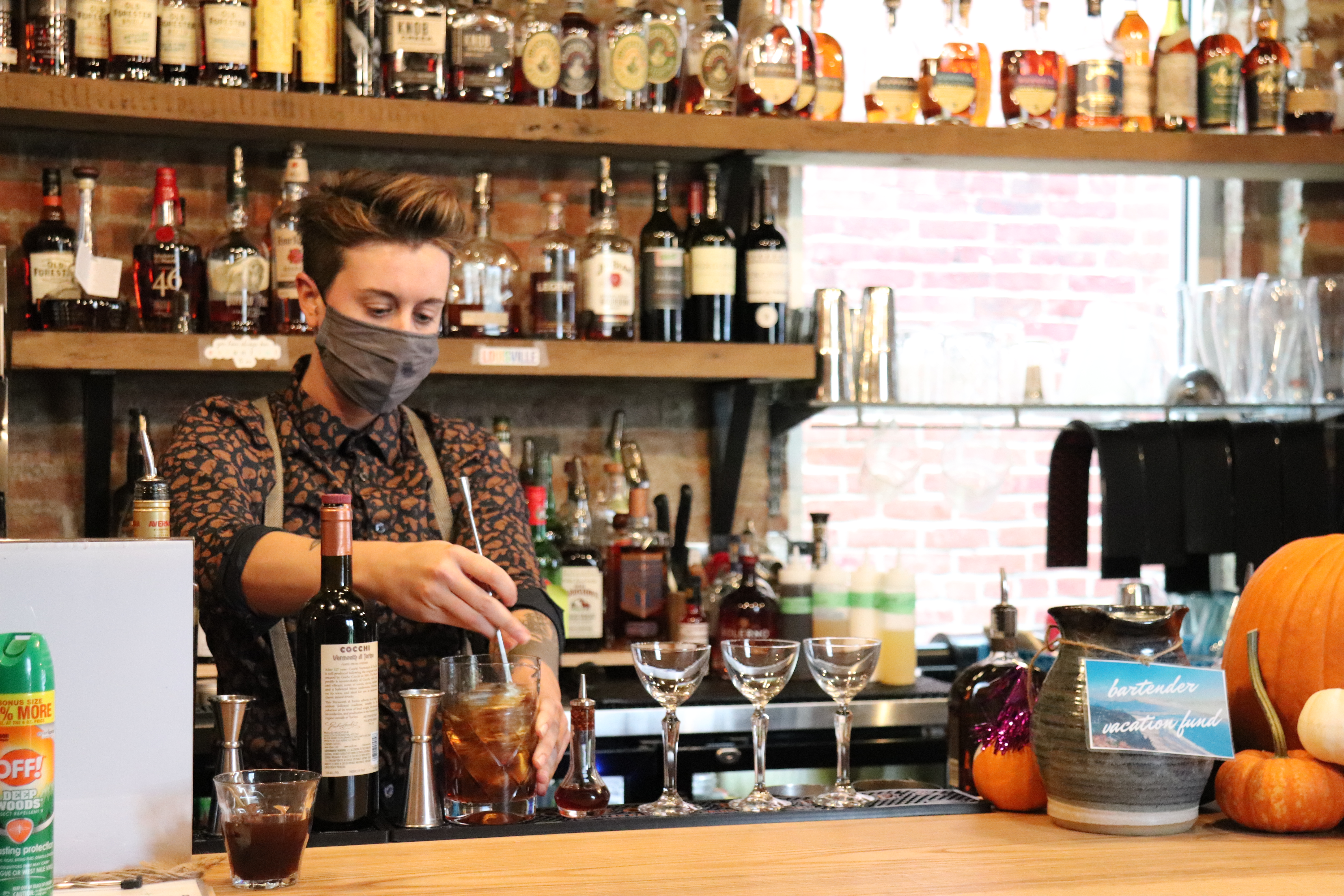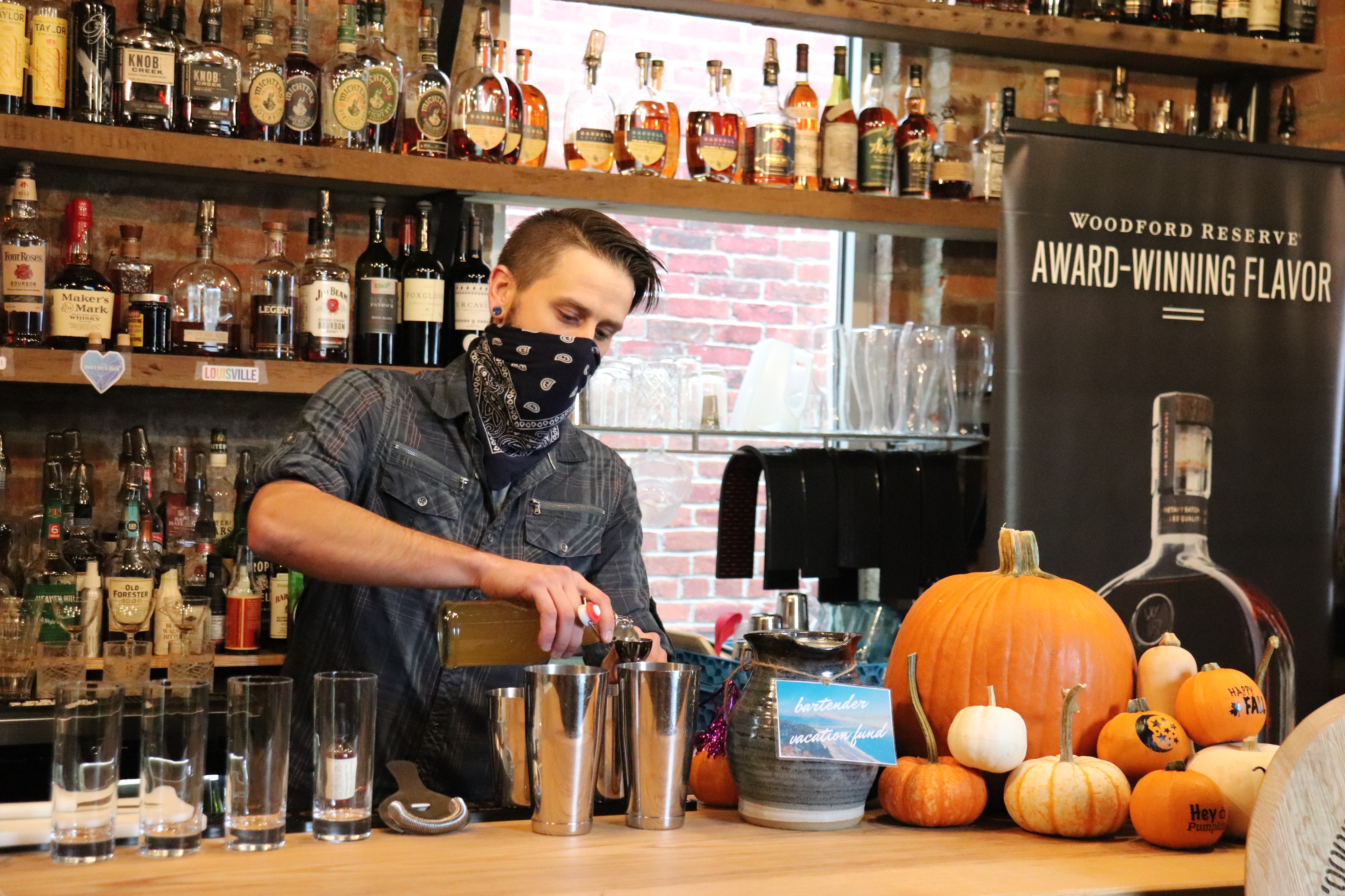 Today I judged a socially-distanced cocktail competition. In previous years this has been the Woodford Reserve Ultimate Manhattan Competition, but this year things have been a little different Many of the competitors thought the whole thing had been canceled until they received the call that the Woodford Reserve brand team had figured out a way to hold the competition – in the closed Trouble Bar in Louisville, one at a time, with just three judges present.