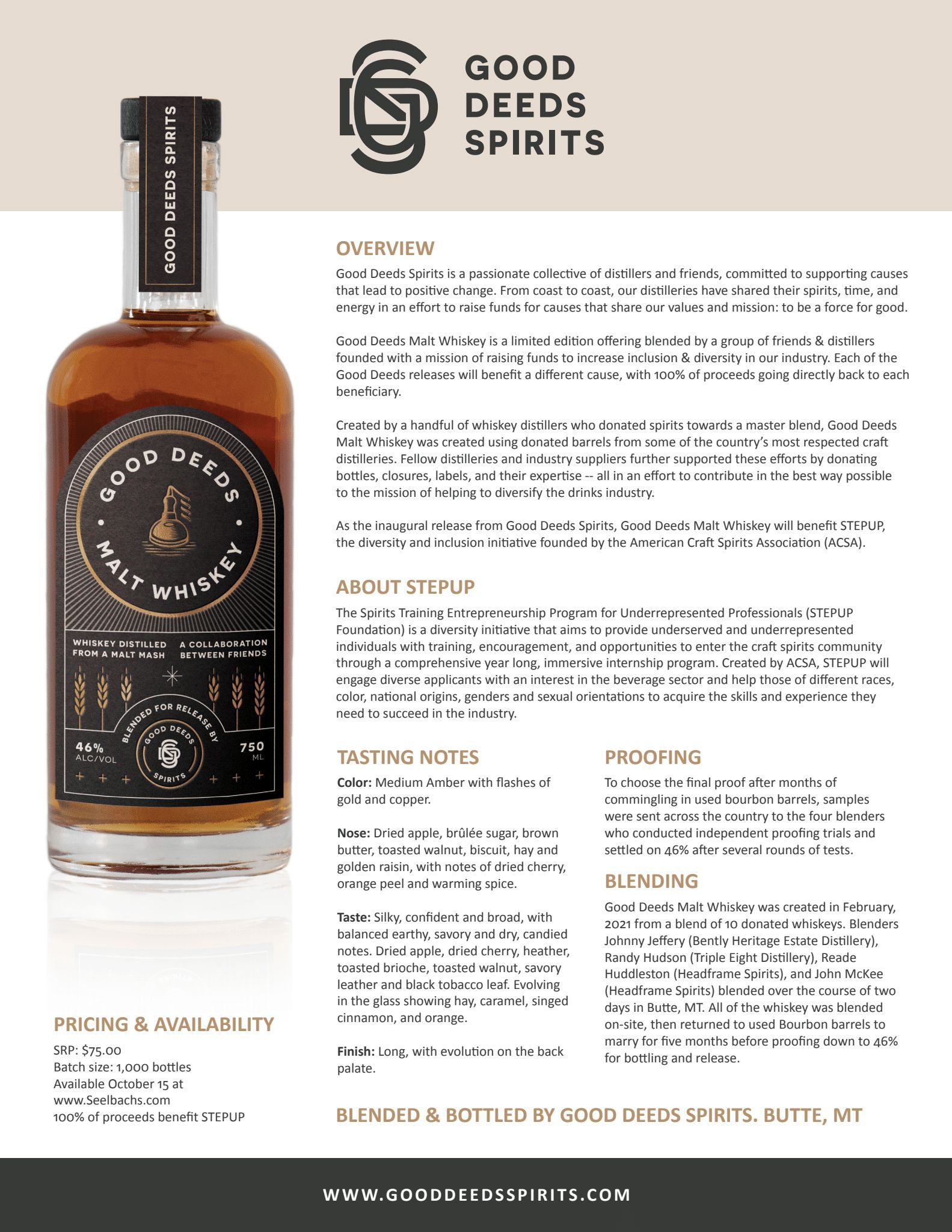“The goal is we’re going to raise $75,000 for the STEPUP campaign to turn good into a verb,” McKee says. “This brand is evergreen, this is just the first release. We intend to keep making and releasing these whiskeys to support people who make and elevate change.”