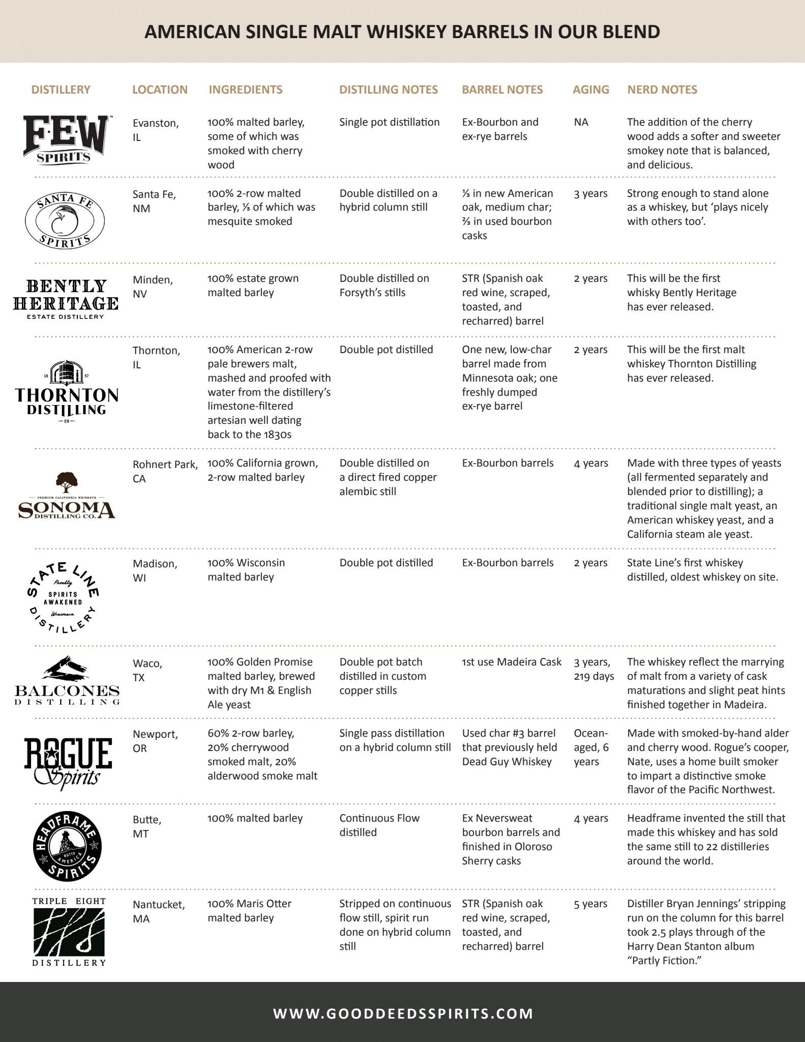 About eight years ago, says John Mckee of Headframe Spirits, several distillers started what they called “The Good Guys Club” in an attempt to create a community of craft distillers who could help and support each other on their whiskey journeys. After years of having the support of other distillers to call when they needed help, they came up with the idea that they needed to turn the “good” into a verb. The concept of Good Deeds Spirits was born.