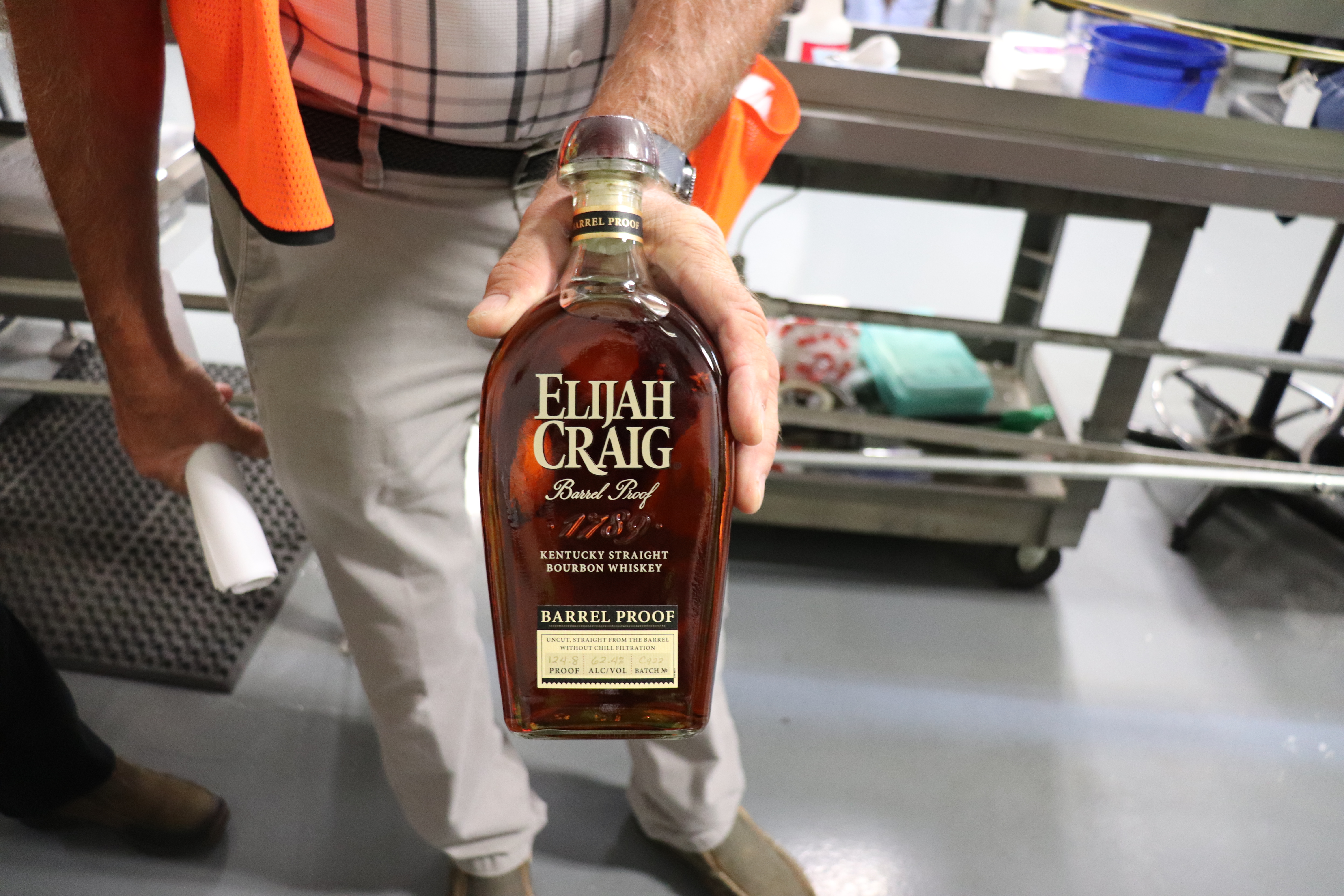 The next batch of Elijah Craig Barrel Proof was rolling off the bottling line when we were there that day. The proof on this one is a doozie!