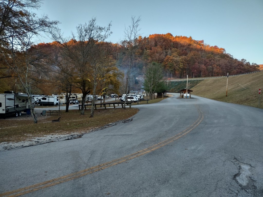 We went to the Natural Bridge State Park in the Red River Gorge geological area, part of the Daniel Boone National Forest. We have camped there before in the primitive campground and were familiar with the area. It took us about 45 minutes to level and set up the trailer. Having the trailer leveled is important for a lot of reasons, including stability. You will need a level to level the trailer and wheel chocks to prevent the trailer from rolling. It sounds scary but it’s a simple procedure. All of the campsites in the campground were flat but some were a little sloped. We ended up moving the trailer by hand to get a good angle where it would be easier to level it, so it ended up diagonal to the pad.