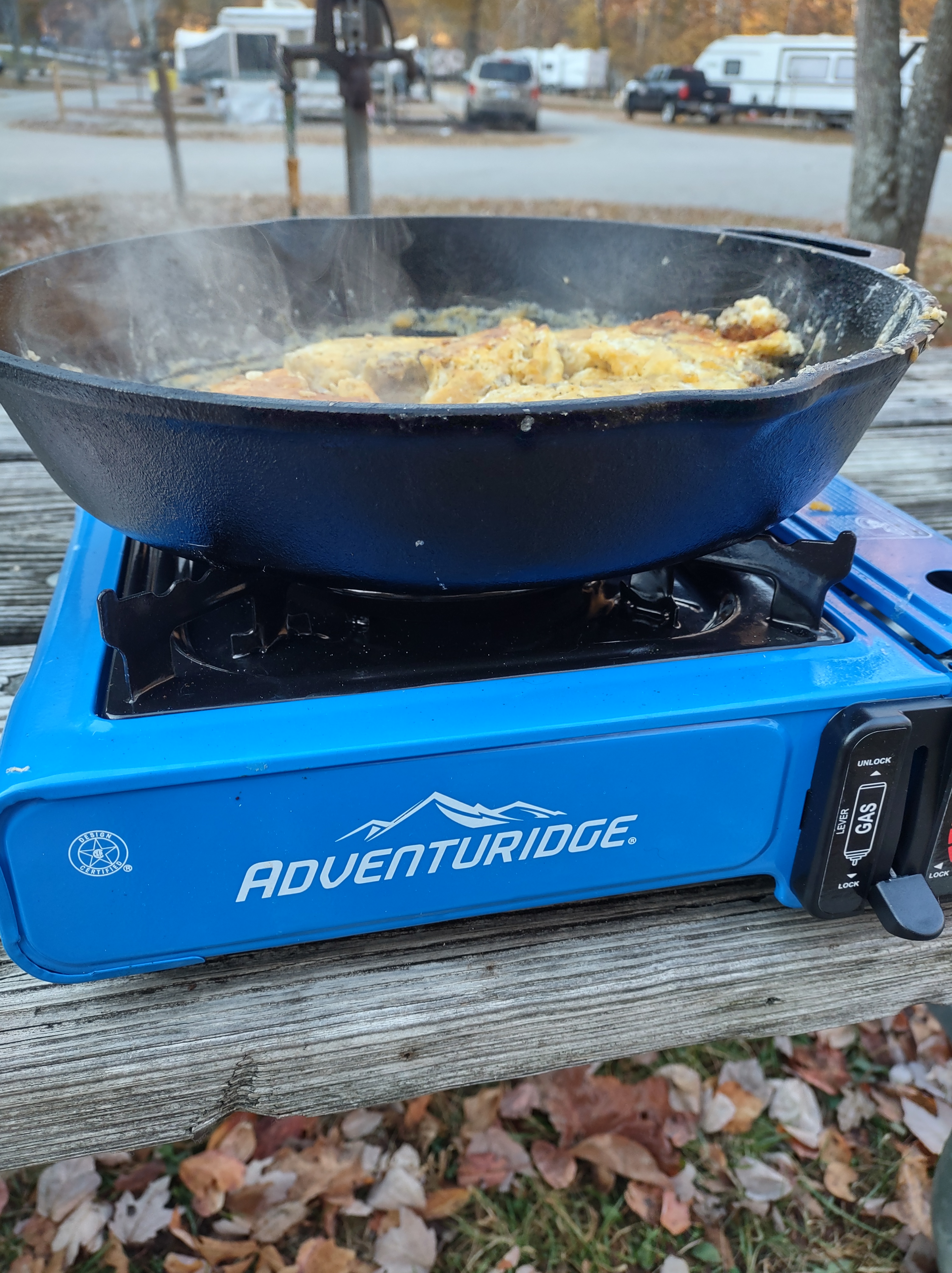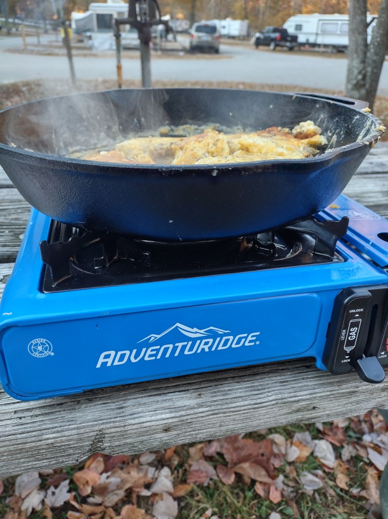 Once we were there we learned the plumbing and HVAC were shot. We already knew the refrigerator was not functional so we had coolers for our food. We brought paper plates and plastic forks for meals so we didn’t have to clean much and what did need to be cleaned could be cleaned in the spigot. Flexibility is important in camping, as is planning. We were close to restrooms and had electricity and comfortable beds and a table both inside and out. We had two sleeping bags per person so we could be comfortable on the coldest nights, which got down to about 40 degrees. If you have HVAC you can use lighter bedding and have less to transport.